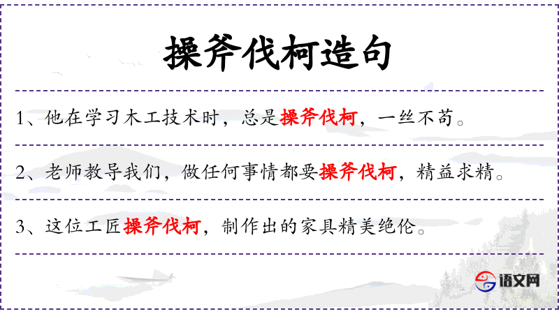 - “老师在绘画课上提醒我们,要像操斧伐柯那样,精确地处理每一个细节。”