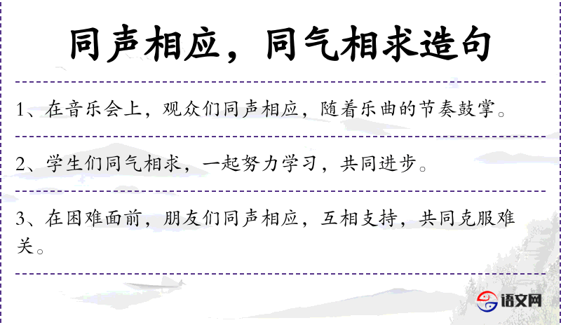 1. 【同声相应】 同类的事物相互感应。指志趣、意见相同的人互相响应,自然地结合在一起。