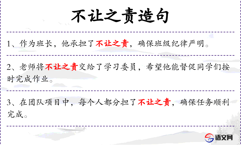 1. 【不让之责】 让:推让;责:责任。不可推让的责任。