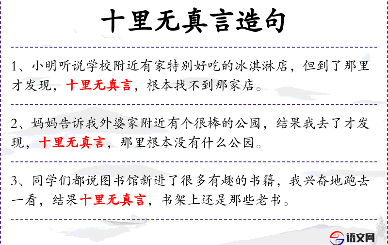 - 文化背景:“十里无真言”是**的一句俗语,强调传言往往失真。