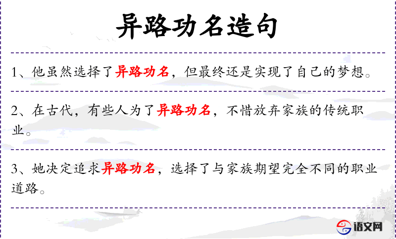 - 宾语:追求异路功名、职业道路