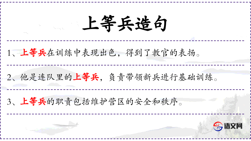 1. 【上等兵】 - 军衔,等级高于列兵。