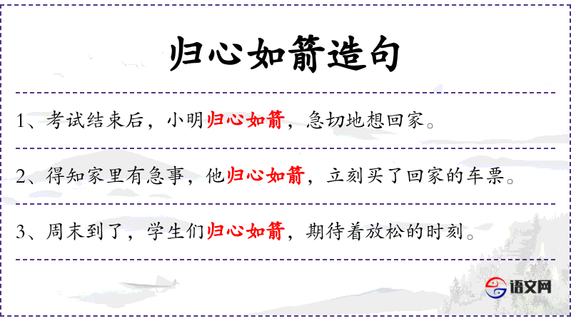 - “归心如箭”这个表达带有强烈的情感色彩,传达了说话者对回家的迫切愿望。