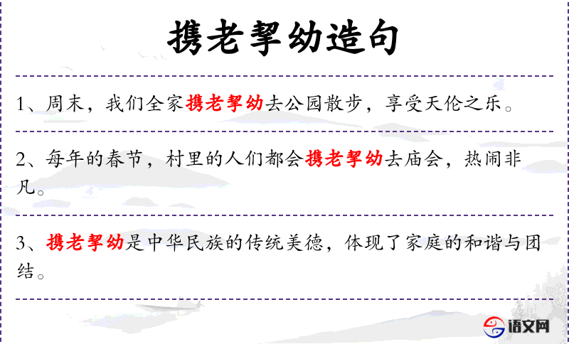 - 携老挈幼:指带着老人和小孩一起。