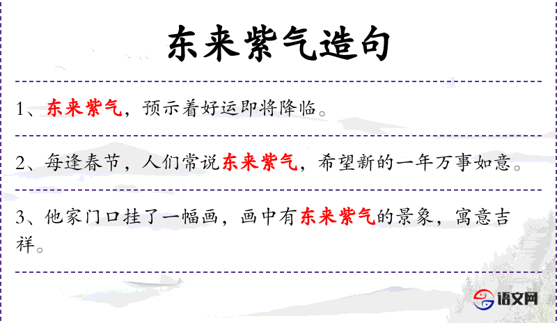 句子:“每逢春节,人们常说东来紫气,希望新的一年万事如意。”