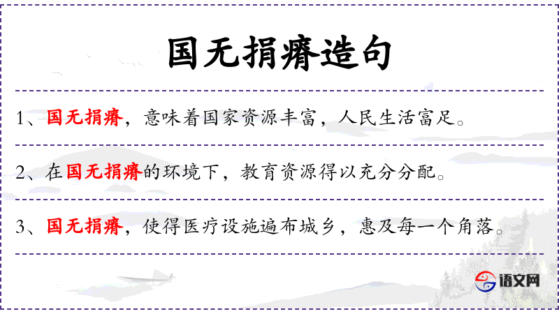 - 国无捐瘠:这个短语的意思是国家没有贫困和匮乏,整体繁荣。