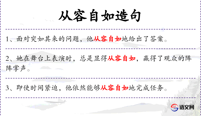 - 状语:面对突如其来的问题,从容自如地