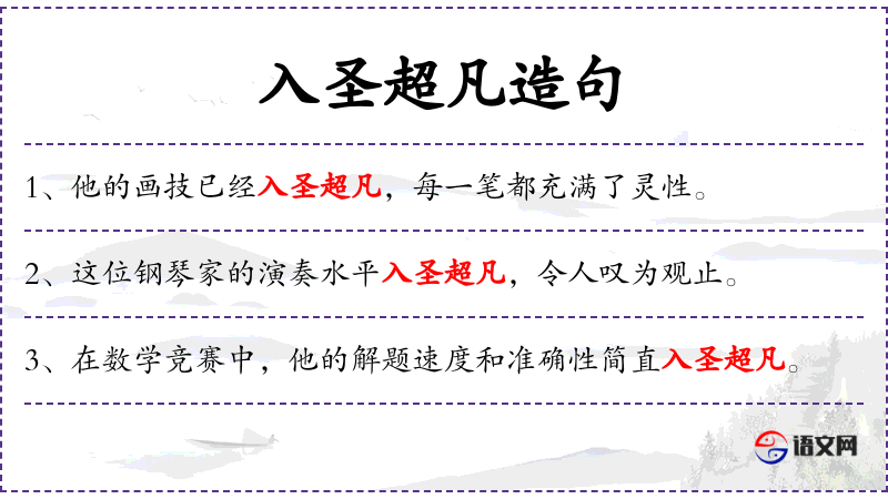 - 入圣超凡:形容词短语,意为非常卓越,超越常人。