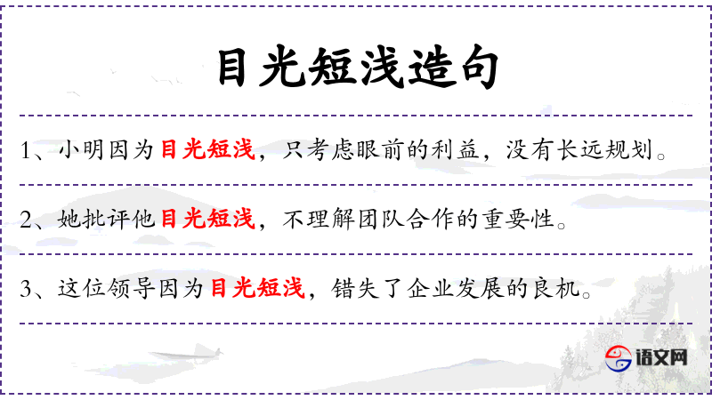 3. 【目光短浅】 - 缺乏远见卓识的、只顾眼前利益的性质或状态。
