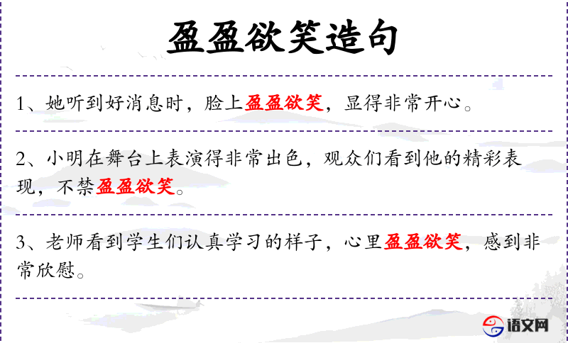 3. 【盈盈欲笑】 - 盈盈:充满的样子。满脸含着微笑。