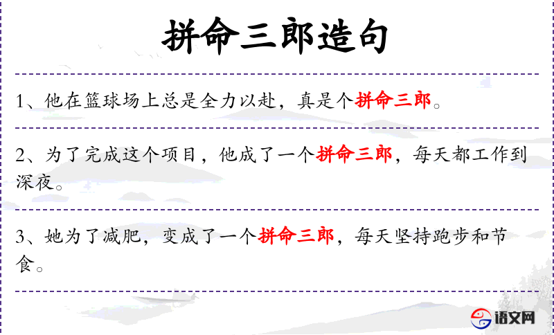 - 拼命三郎:固定搭配,形容非常努力、拼命的人。