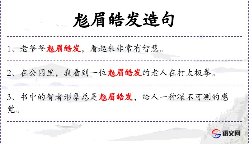 - “老巫师在电影中的形象,通过龍眉皓发的描绘,显得格外神秘。”