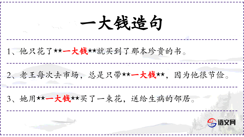 一大钱造句