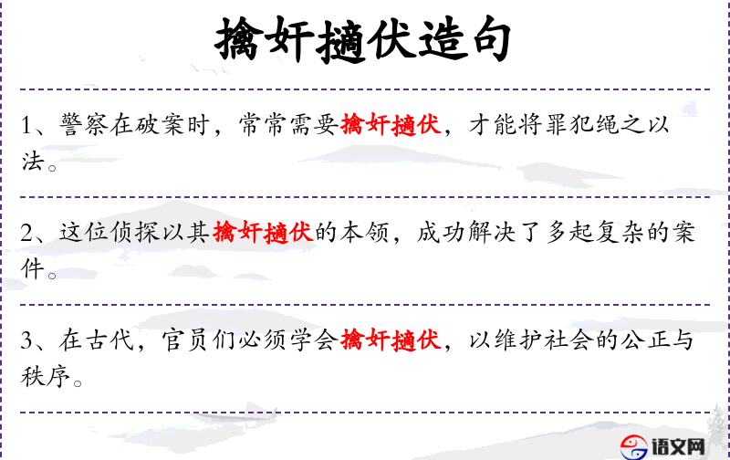 句子:“这位老警官的擒奸擿伏经验丰富,总能找到案件的突破口。”
