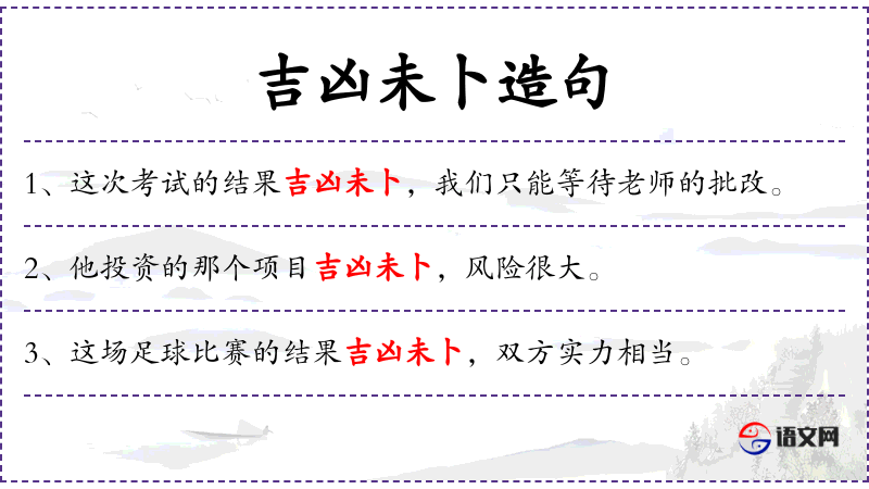 - 吉凶未卜:成语,意思是结果好坏难以预料。