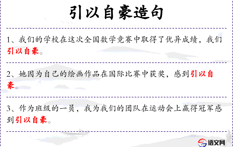 - 引以自豪:表示因为某事感到骄傲和自豪。