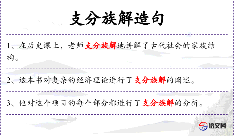 - 支分族解:这个词组可能是“细致分析”的误用或特定领域的术语,表示对事物进行详细、深入的分解和解析。