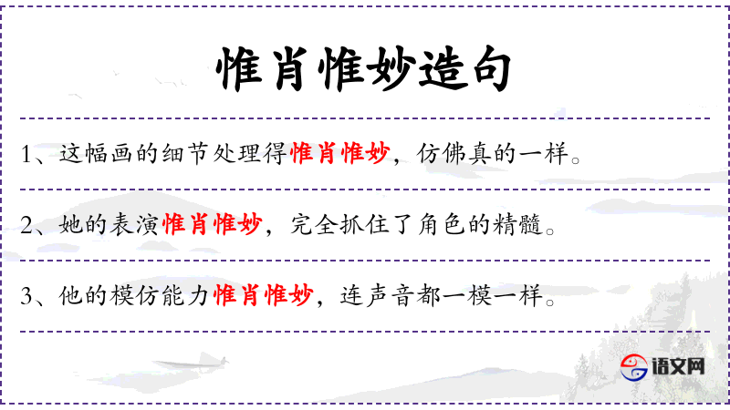 - 惟肖惟妙:形容技艺高超,模仿得非常逼真。