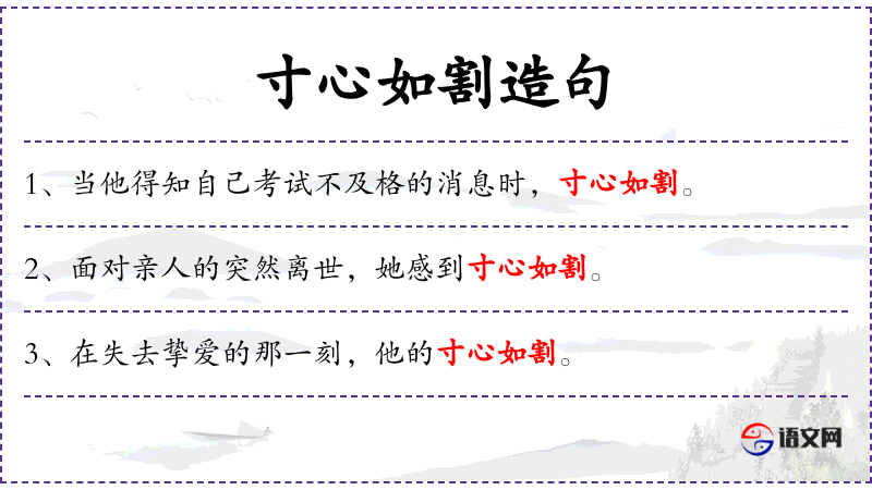 - 成语:“寸心如割”是一个成语,形容内心极度痛苦。