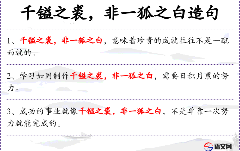 - 状语:非一狐之白,不是单靠一次努力就能完成的