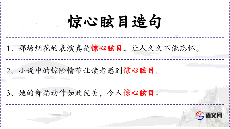- 惊心眩目:震撼、惊心动魄、触目惊心