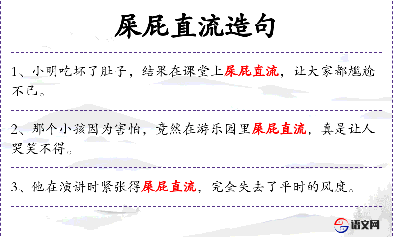 - 宾语:无明确宾语,但“屎屁直流”是谓语的核心动作