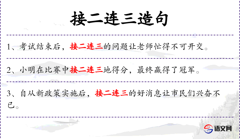 - “接二连三”这个成语强调了连续性和频繁性,常用于描述连续发生的好事。