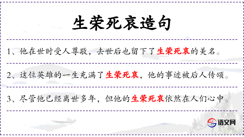 4. 【生荣死哀】 - 活着受人尊敬,死了使人哀痛。用以赞誉受人崇敬的死者。
