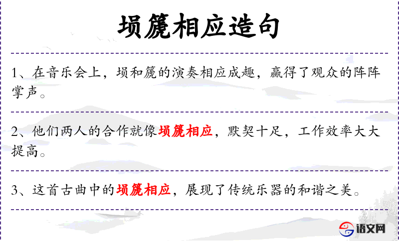 句子:“在音乐会上,埙和篪的演奏相应成趣,赢得了观众的阵阵掌声。”