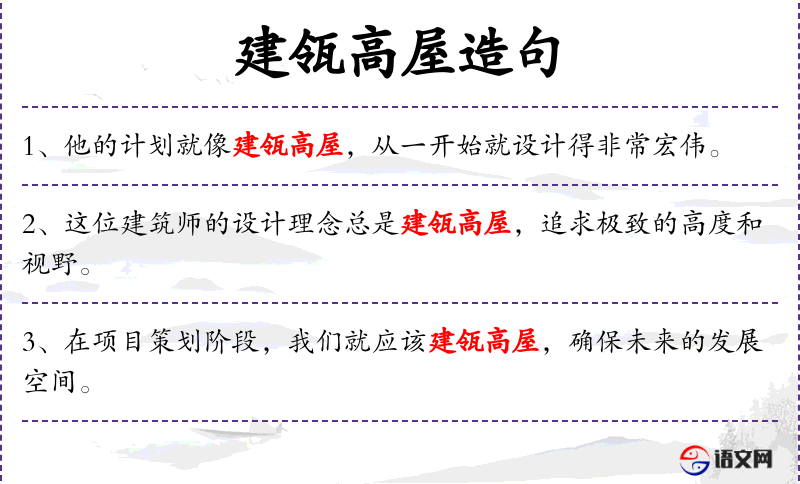 - 宾语:“建瓴高屋”、“非常宏伟”