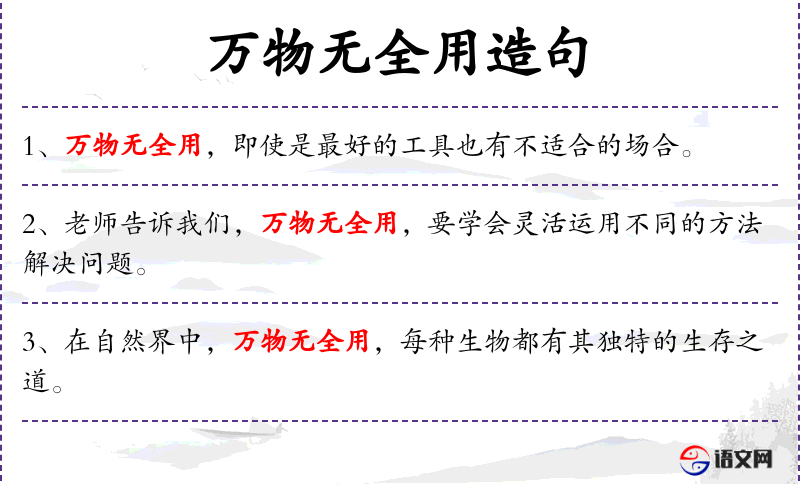 - 万物无全用:意味着没有任何事物是完美无缺的,都有其局限性。
