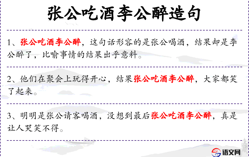 这个句子常用来形容事情的发展与预期完全相反。例如,原本应该是张公喝酒后醉倒,结果却是李公醉了,这种意外的结果与人们的预期相反。