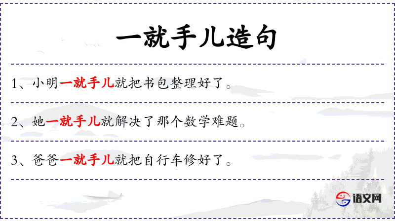 - 一就手儿就:表示动作迅速、熟练,通常用来形容某人做事效率高。