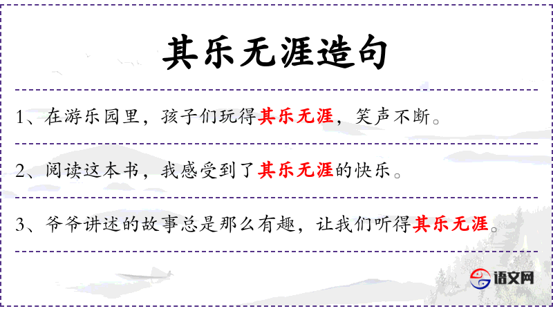 - 其乐无涯:成语,意思是乐趣无穷,非常快乐。