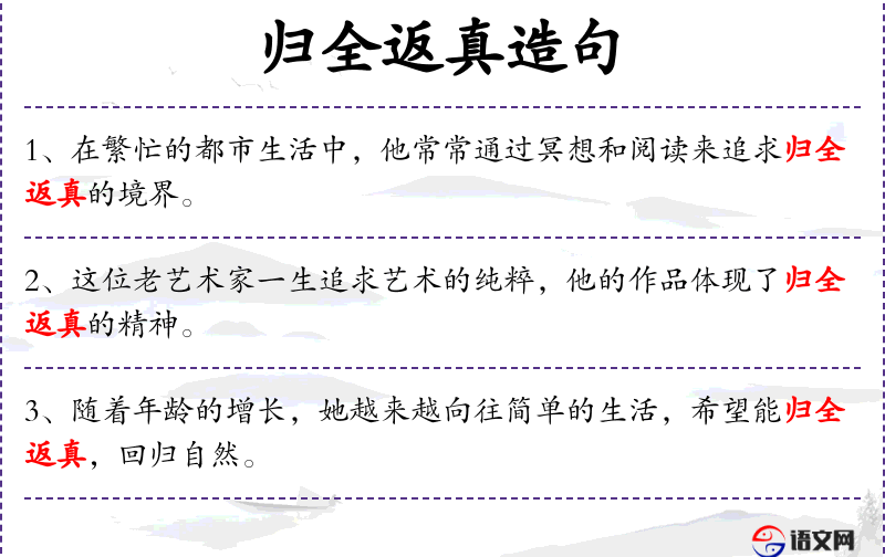 - 归全返真:回归完整和真实的状态。
