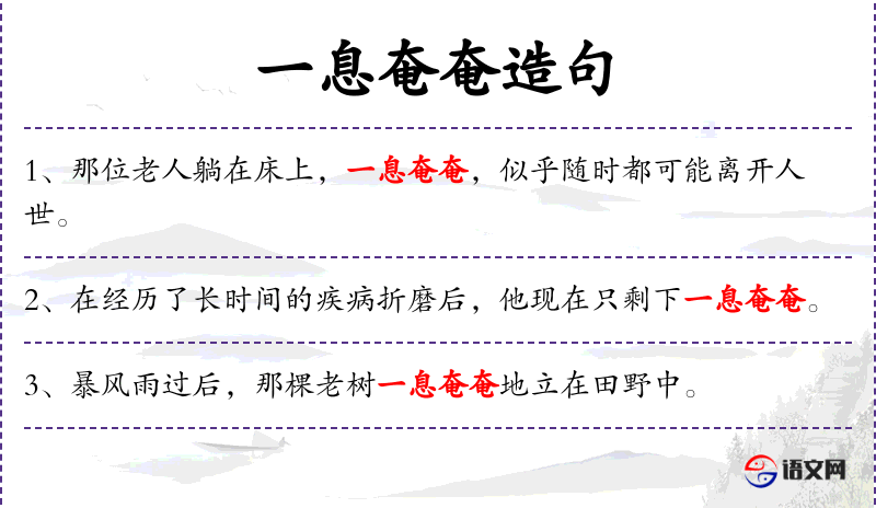 一息奄奄:这个成语源自**传统文化,常用于描述生命垂危的状态。类似的成语还有“奄奄一息”,都带有浓厚的文化色彩。