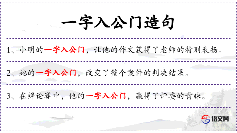 句子:“在法律文件中,一字入公门,可能关系到案件的成败。”
