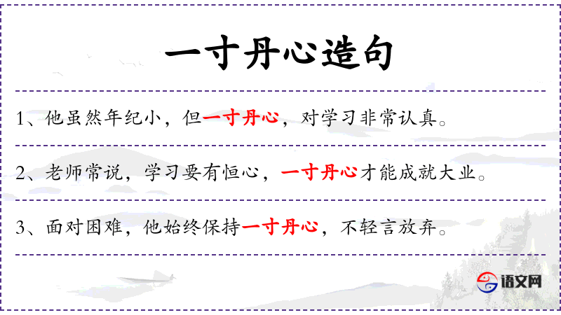 - 状语:无论遇到什么、以一寸丹心、从不退缩