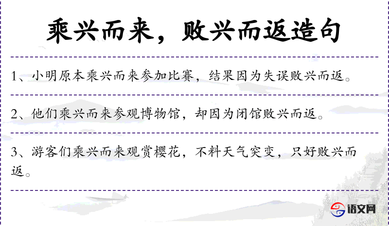 - 成语“乘兴而来,败兴而返”反映了人们对计划与现实之间差异的普遍感受。