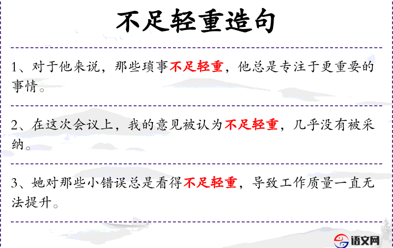 - 不足轻重:成语,表示不重视或不认真对待。