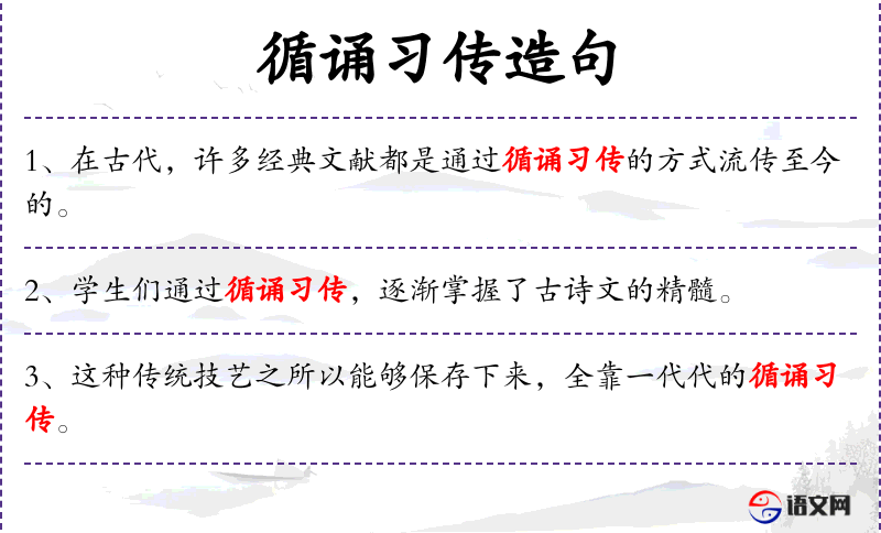 句子:“民间故事和传说往往是通过循诵习传的方式代代相传的。”