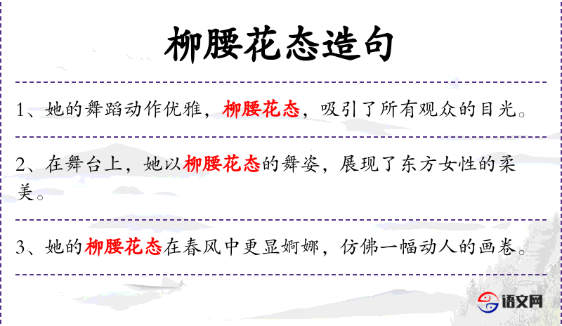 2. 【柳腰花态】 - 形容女子婀娜娇美的体态。