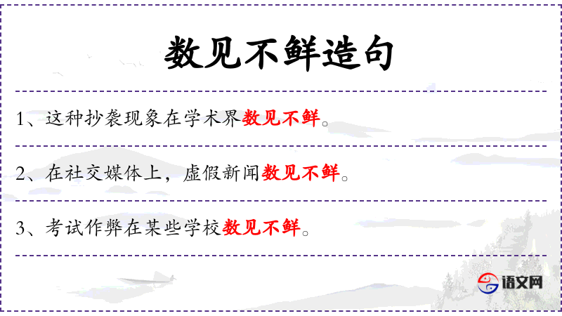 - 数见不鲜:成语,意思是经常见到,不稀奇。