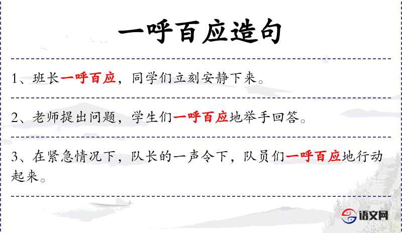 1. 【一呼百应】 一个人呼喊,马上有很多人响应。