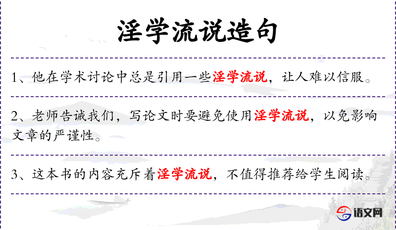 1. 【淫学流说】 - 淫:浮华。指不合正道的邪说或没有根据的言论。