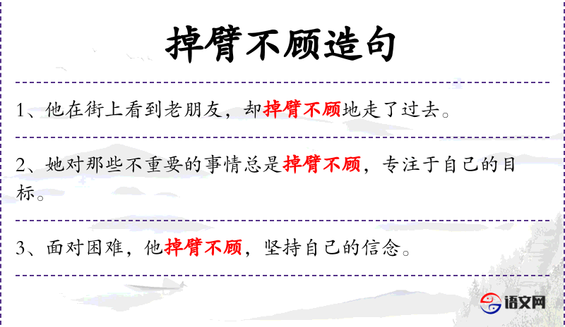 1. 【掉臂不顾】 掉:摆动。摆动着手臂,头也不回。形容毫无眷顾。