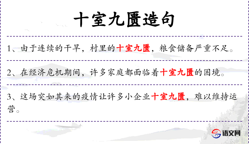 3. 【十室九匮】 匮,指财物匮乏。形容因各种自然或社会的原因而造成百姓贫困的景象。
