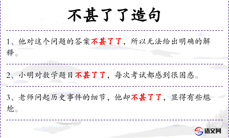 - 不甚了了:成语,意为不太了解或不太清楚。
