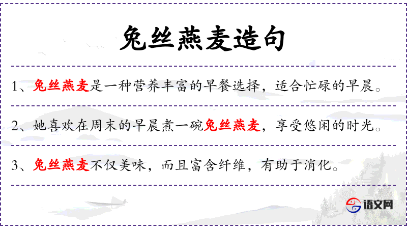 句子:“兔丝燕麦的制作简单,只需几分钟就能准备好。”