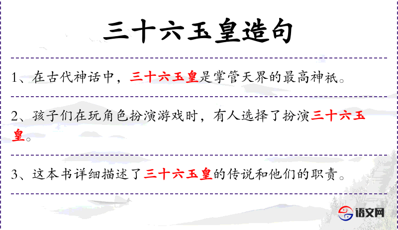 1. 【三十六玉皇】 - 道教所称的三十六天帝。